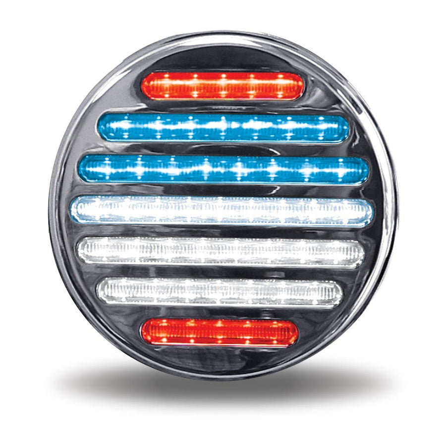 Auxiliary colours available are Purple, Green, Blue, Red, White and Blue USA stripes and White. White is normally used for extra reverse lighting.